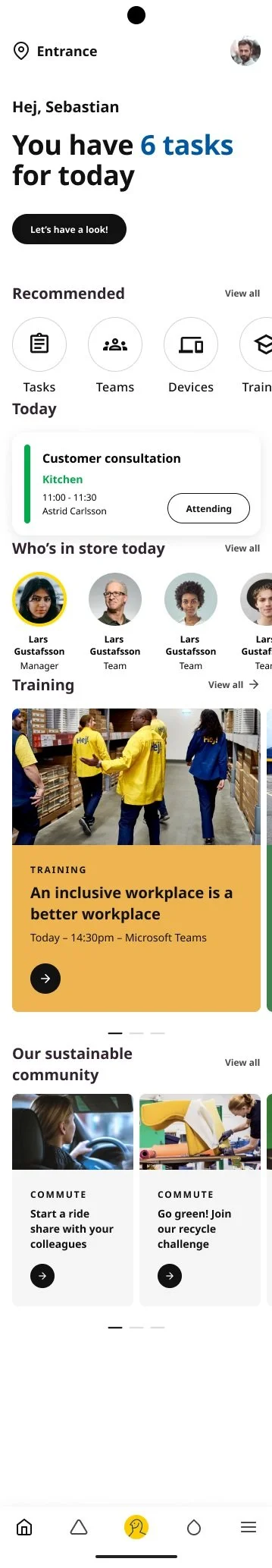 This case study explores how the team designs and launches the IKEA employee super app—a unified, consumer-grade digital platform built to support everyday tasks across roles. What begins as a response to tool fatigue quickly evolves into a vision for holistic co-worker empowerment. By simplifying logins, consolidating tools, and anticipating real-time needs, we help IKEA co-workers shift from firefighting to focusing on what they do best: supporting each other and the customer.