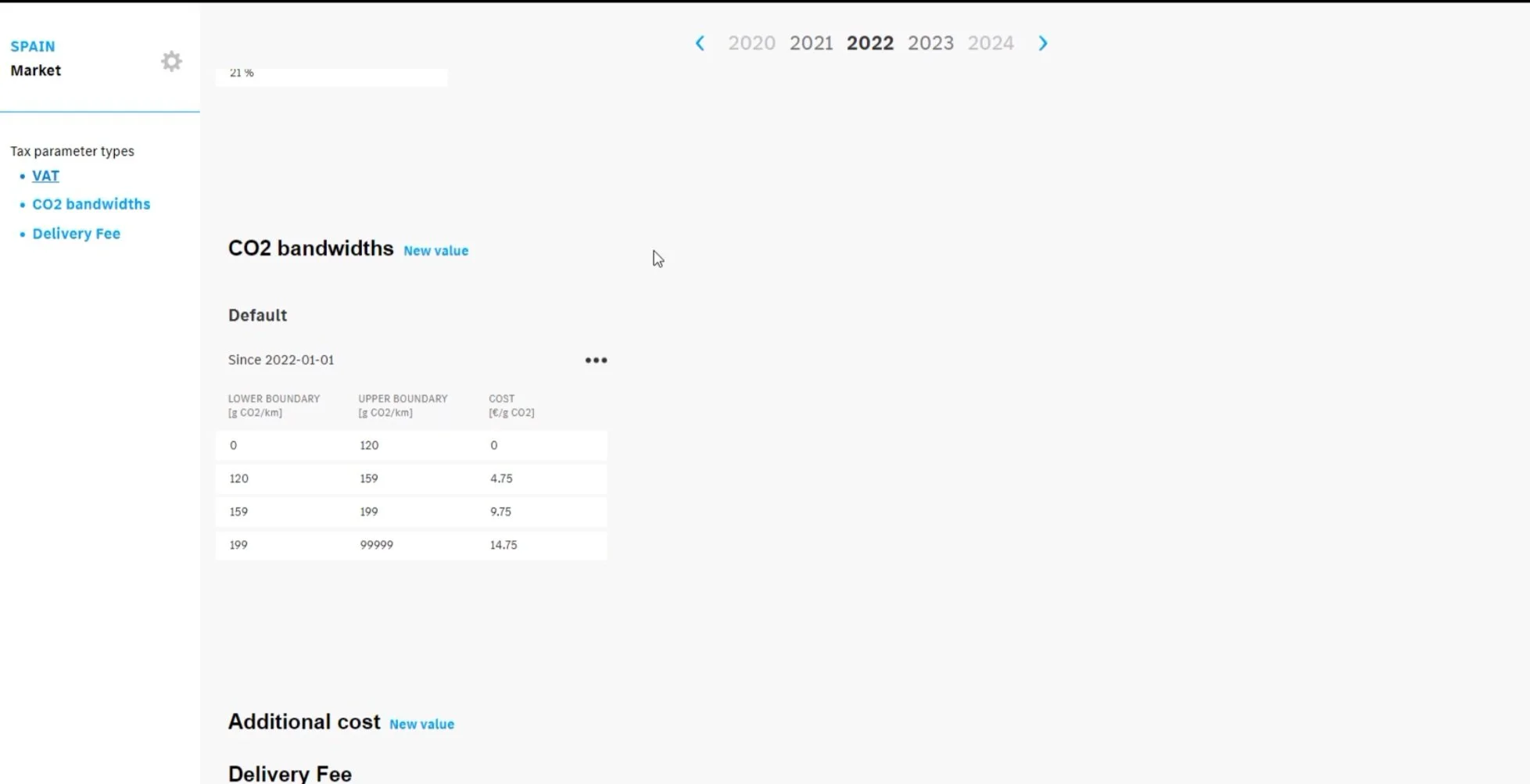 This section showcases the early-stage development of the tax parameter management tool within the Verso platform, which was initially piloted for deployment in the German market. As Germany operates under very specific and detailed taxation rules for vehicles—including CO₂ emissions-based costs, VAT, and delivery fees—it served as an ideal testbed to validate the logic and usability of the system before considering a broader global rollout. The plan was to first implement and fine-tune this tool locally, then expand its structure and capabilities across all other Mercedes-Benz markets worldwide